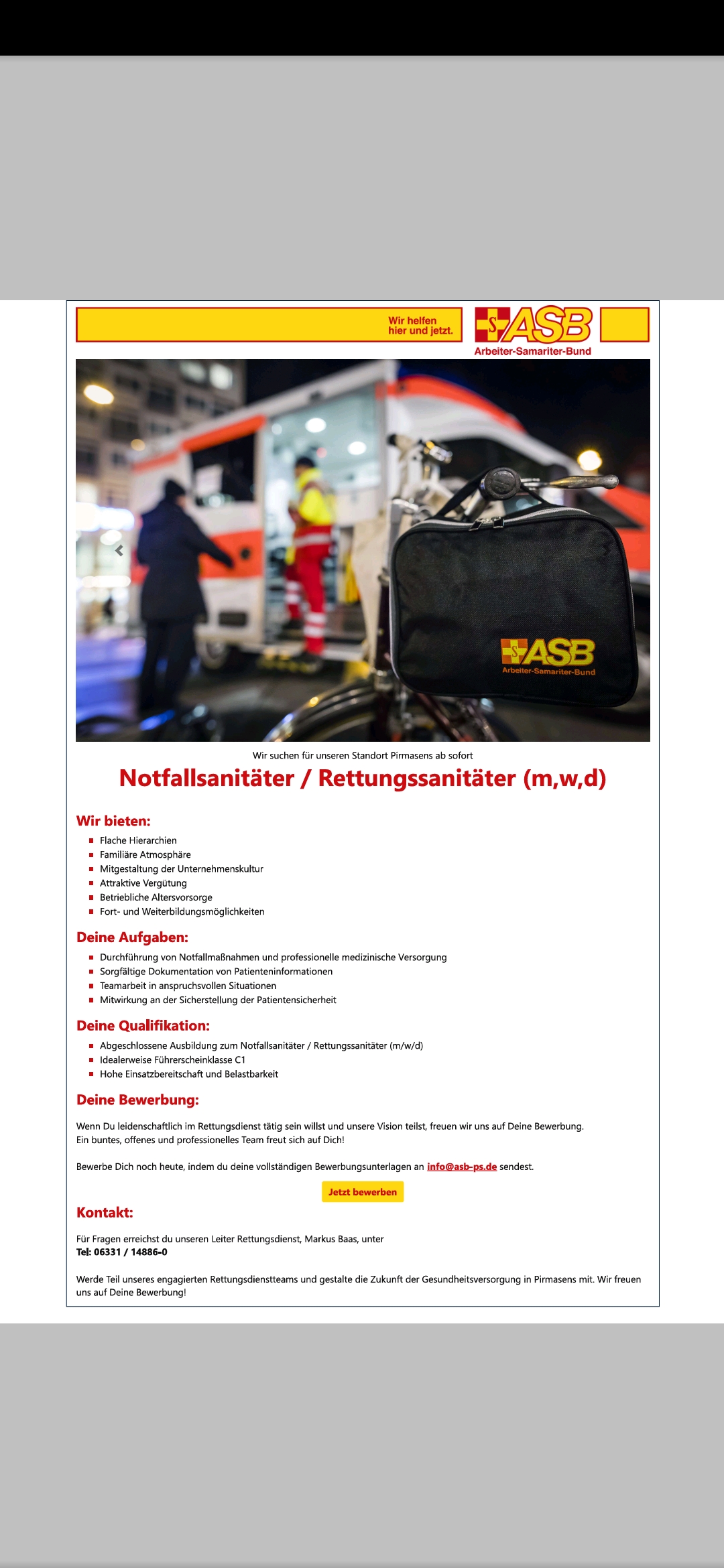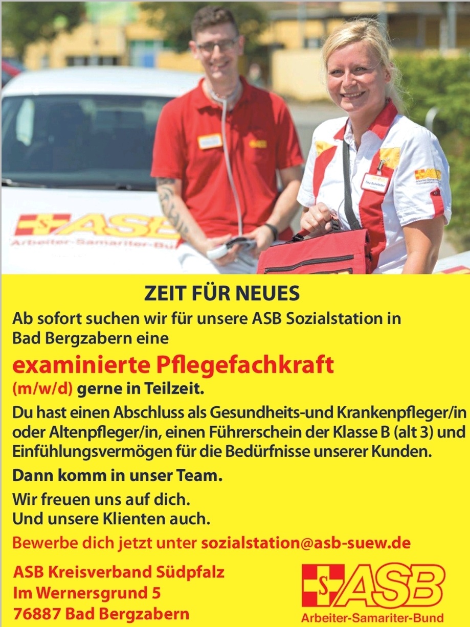 Aktuelle Stellenangebote beim ASB Kreisverband Südpfalz