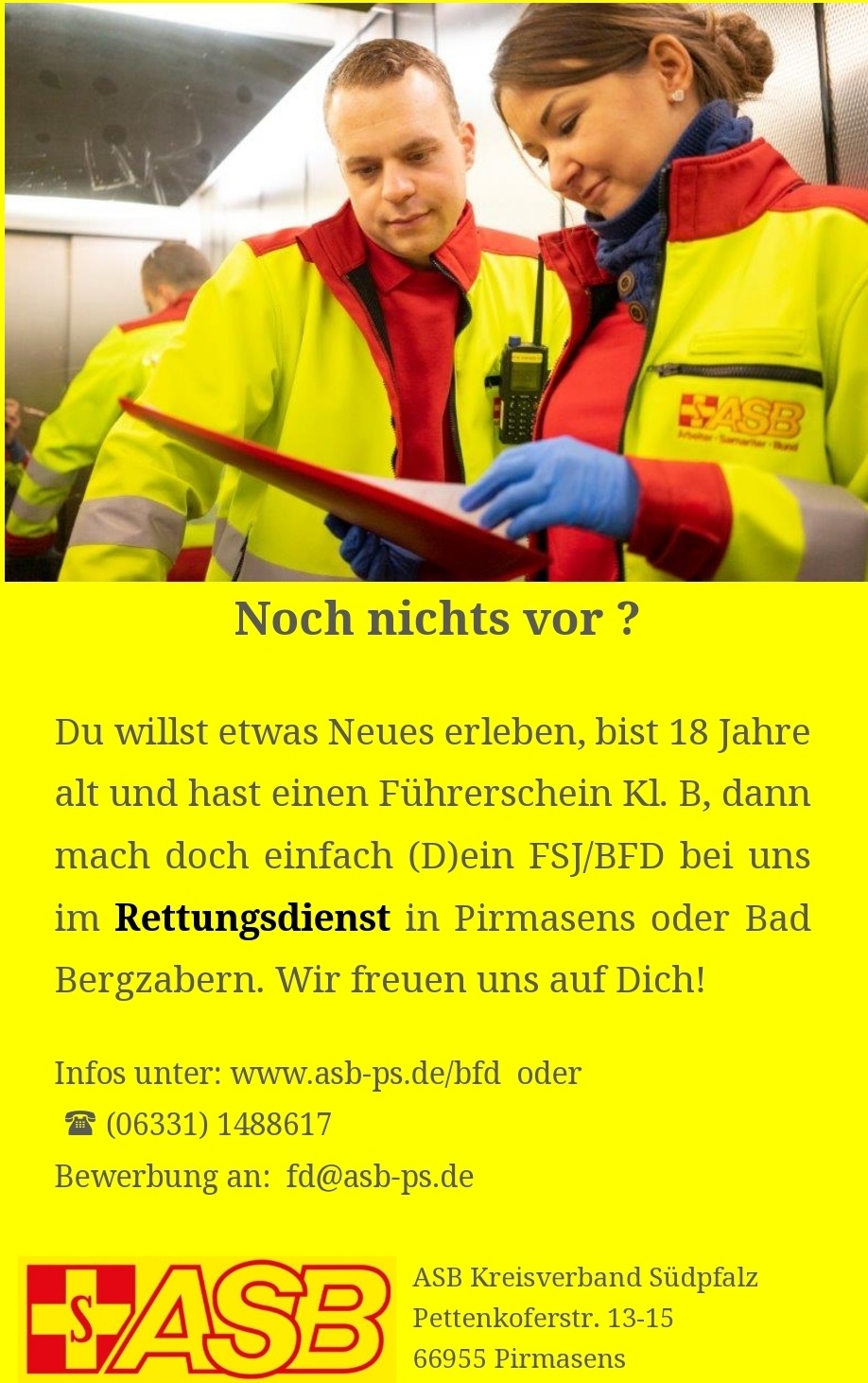 Starten Sie ihre Karriere beim ASB KV Südpfalz